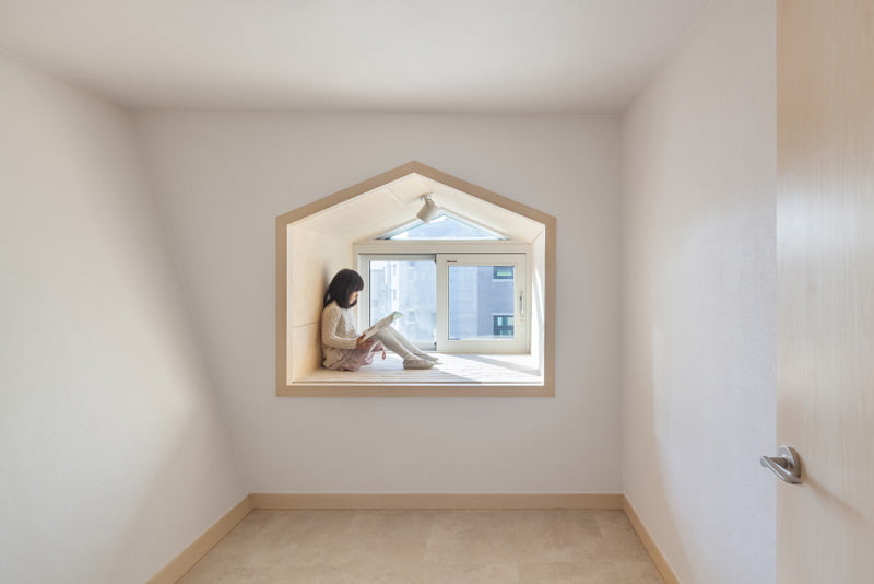 This window seat design in an apartment in South Korea, designed by AND. Photography by Kyungsub Shin.