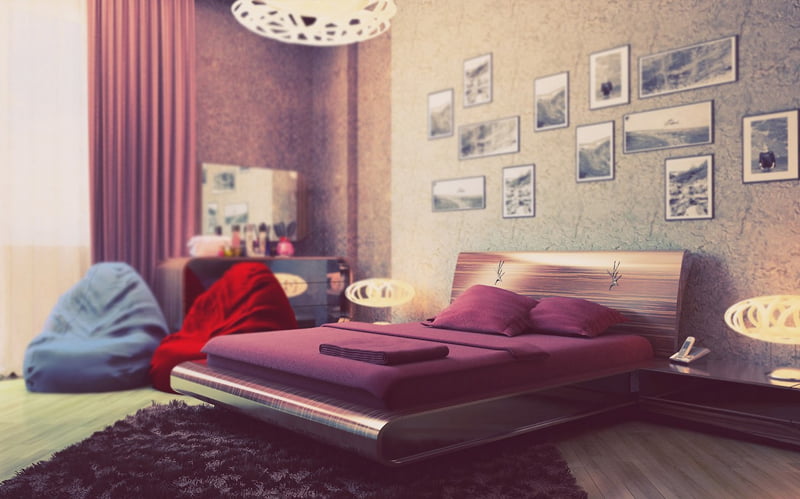 Red, Orange and Purple Colors Bedroom Painting Ideas: