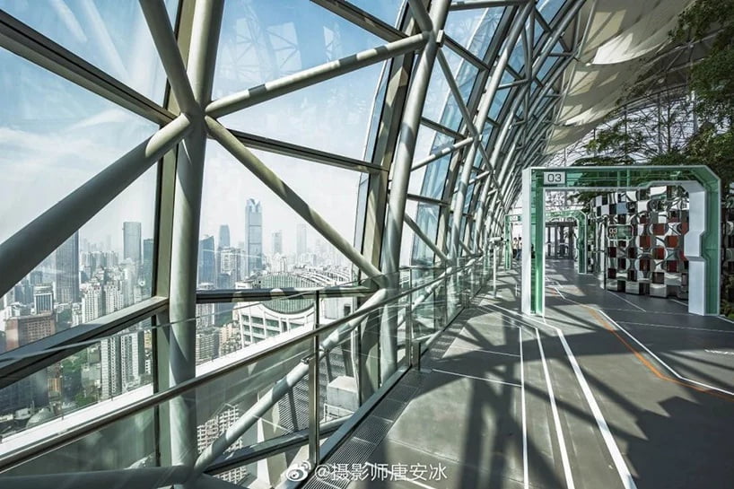 Visitors to the exploration deck at the horizontal skyscraper begin their journey at level 1 with an exploration-themed exhibition, in collaboration with national geographic.