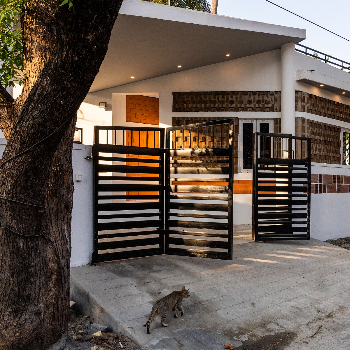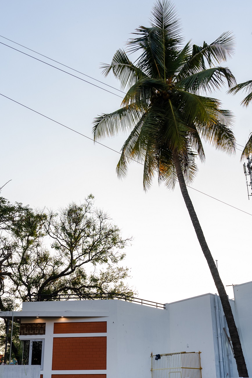 The context has two big trees in front of the house which acted as a key design factor and no trees were cut during the construction. The tree crown on the south eastern part provided the shade for the first half of the house reducing the heat conducting areas.