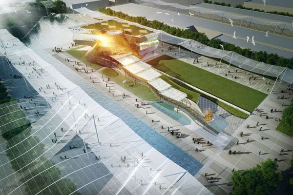 Winning Design of Thai Pavilion for Milan Expo located central on the Expo’s main avenue. the pavilion will be next to a canal. That will be use as a part of the exhibition. Relating back to Bangkok’s informal identity as the “Venice of Asia.”