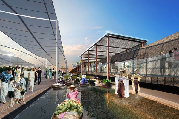 Winning Design of Thai Pavilion for 2015 Milan Expo set out in an outside exhibition. That recreates the atmosphere of the Festival of the Temple’s local food fair. with a floating market to recall times past, when Bangkok was call “the Venice of the East”.