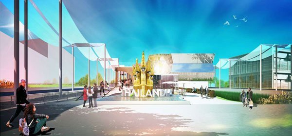 The Winning Design of Thai Pavilion focused on that water plays in Thai agriculture in a some ways. An intangible metaphor of Nāga for design concept. The legendary water snake from Thai mythology, welcome visitors at the beginning.