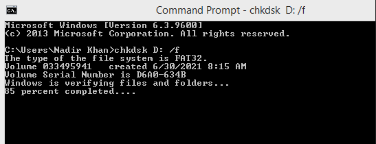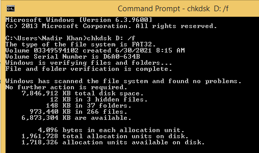 - Type “chkdsk X: /f” (Replace “X” with your letter assigned to your USB flash and press enter).