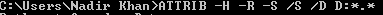 4. Finally, Type “ATTRIB -H -R -S /S /D X:*.*”, Now pres enter(Replace X with the letter assigned to USB drive )